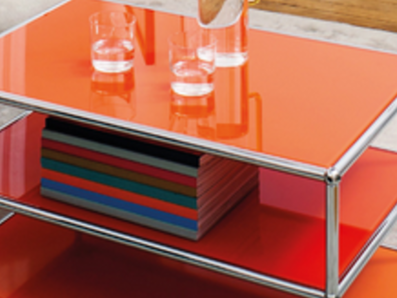 Mesa de vidrio reluciente con diseños únicos ideal para centros de sala