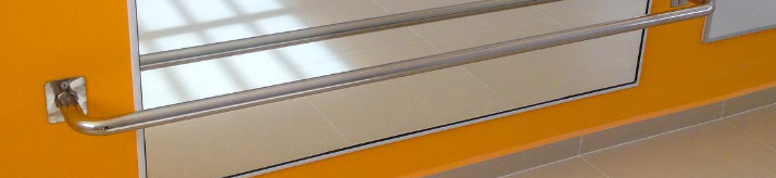 Fabricado en acero resistente, este pasamanos garantiza un agarre seguro y duradero.