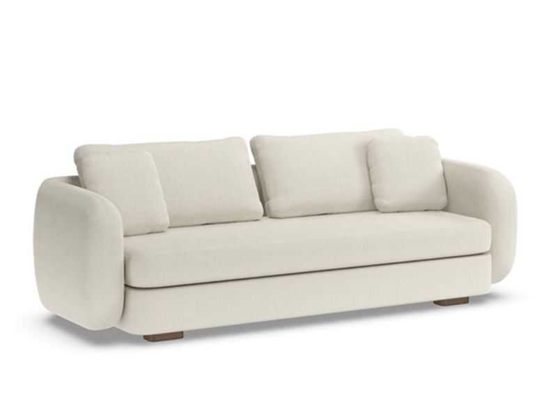 Sofá icónico de la colección GEM. Se caracteriza por tener proporciones generosas. Las esquinas del brazo superior del sofá tienen forma cushion, la principal inspiración de la colección. La forma del respaldo se va moldeando hasta llegar al brazo donde se reduce su grosor, convergiendo en una delicada silueta que abraza a sus ocupantes.