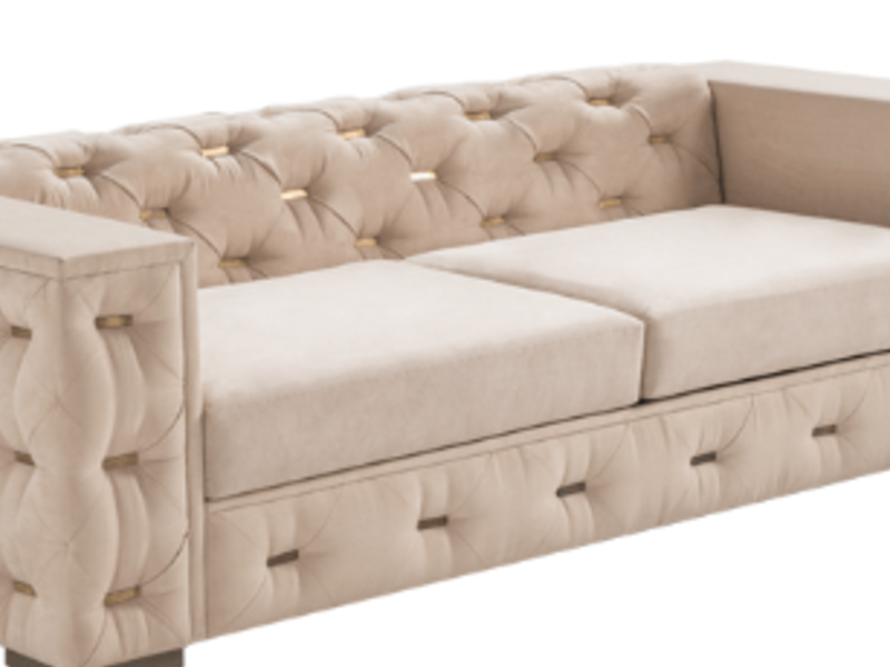 Una pieza de lujo, gracias a detalles en su capitoneado con insertos de metal, espaldar con panel tapizado liso y asientos lisos hacen que este sofá sea una pieza única. Fue inspirada en el clásico sofá Chester, con un giro para transformarlo en una pieza contemporánea y fácil de complementar con nuestra colección actual. Al igual que el Chester, nuestro sofá tiene el increíble trabajo manual que es el proceso de capitonear una pieza. El artesano se encarga de coser uno a uno los detalles y después de incluir el detalle metálico en cada botón. Es un proceso artesanal minucioso y de gran dedicación. Los detalles metálicos fueron cuidadosamente seleccionados para darle a esta pieza esa distinción.