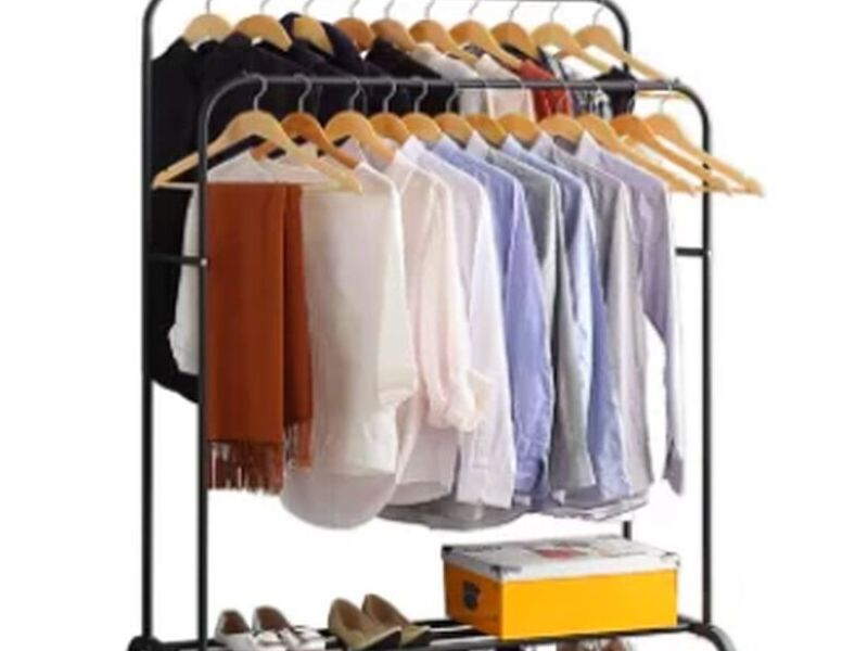 Este Perchero metálico de doble barra está diseñada en tubo con doble barra. Proporciona espacio de almacenamiento fácil y conveniente. Las barras colgantes altas y bajas son ideales para prendas de diferentes largos, lo que hace que la organización diaria sea más eficiente.