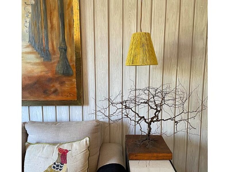 Lámpara Panguipulli amarilla, hecha de yute y a mano.