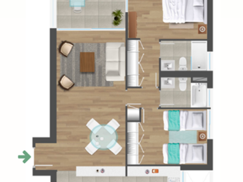 Los departamentos del Tipo 3, del edificio Alto Balaguer, son departamentos con ubicación surponiente del edificio. cuentan con 3 dormitorios el principal en Suite y salida directa a la terraza.