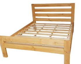 Cama infantil de madera clara con estructura simple y segura.