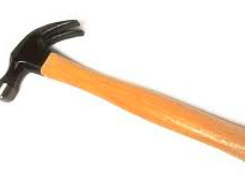 Martillo carpintero: Herramienta manual con una cabeza de metal y un mango de madera, utilizada para golpear clavos en materiales como madera y metal. Viene en diferentes tamaños y pesos para diferentes aplicaciones.
