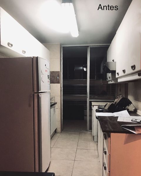 Ampliamos la cocina hacia el dormitorio de servicio y cambiamos toda su distribución, para dar cabida a una isla/comedor de diario.