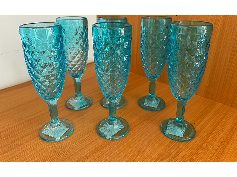 Set de copas de color celeste de gran calidad.