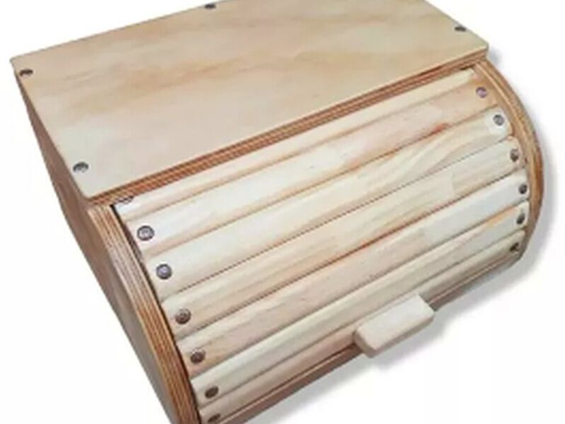Mantén tu pan fresco y organizado con esta elegante panera de madera, ideal para una cocina rústica y funcional.