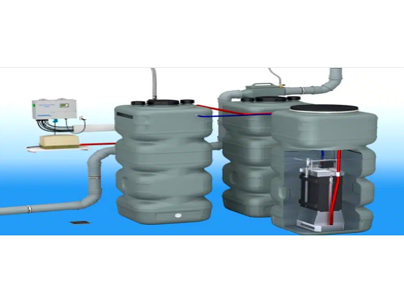 Unidad de almacenamiento de aguas grises/BMT: Homogenización y tratamiento mecánico-biológico sin químicos, compresor de aire y filtro de membrana PES.