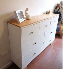 Mueble bajo con tres cajones grandes ideal para ropa u otros artículos.