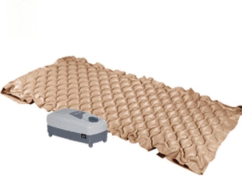 Colchón antiescaras de aire con sistema de burbujas. Ayuda a prevenir eficazmente las úlceras de presión o escaras, dispersando el peso del cuerpo del paciente.