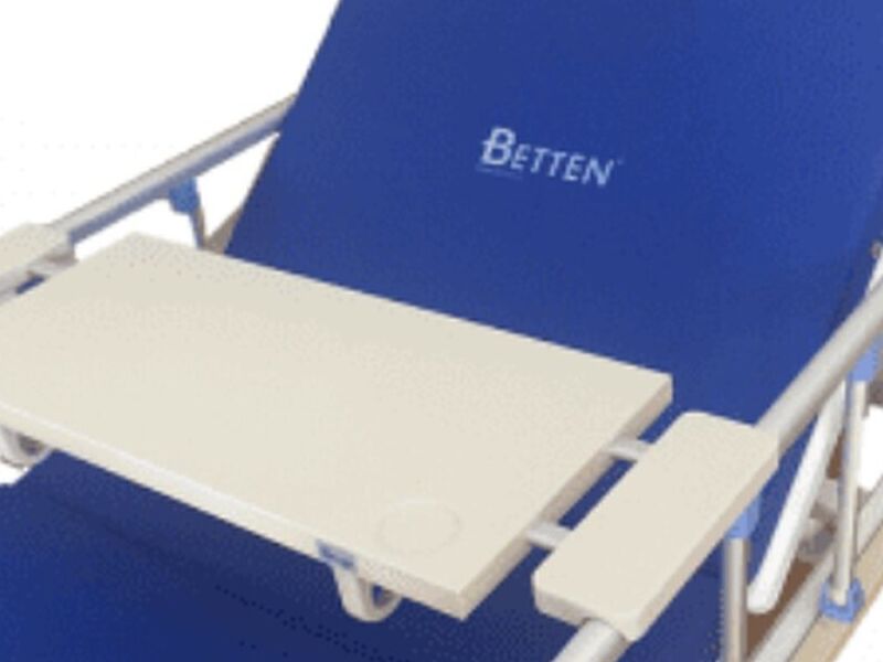 Especialmente diseñada para adaptarse a camas clínicas. Bordes ajustables según el ancho de la cama. De 88 a 105 CM. Material: Plástico ABS y rieles de aluminio. Posa-vasos.