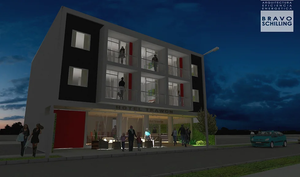 Se plantéa un Hotel urbano que destaca los materiales naturales utilizados en sus revestimientos interiores. Se configura con una construcción continua con habitaciones orientadas hacia la calle y hacia el centro de la manzana.