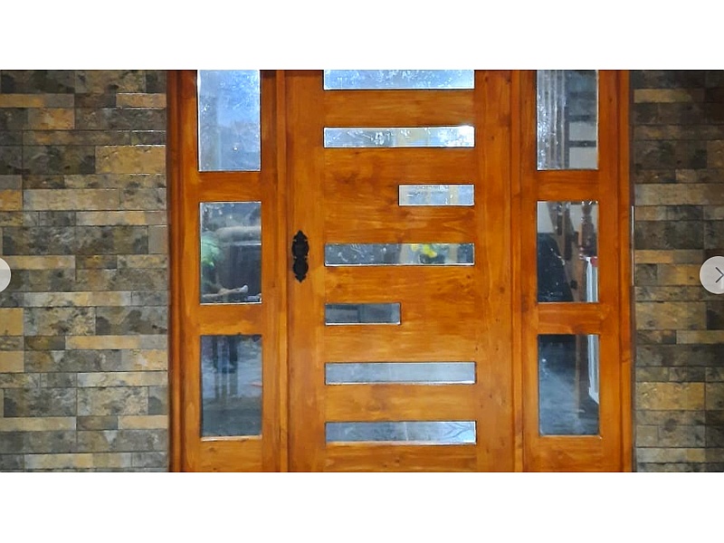 Destaca la entrada de tu hogar con una puerta principal de madera, que aporta calidez, elegancia y una primera impresión impactante.