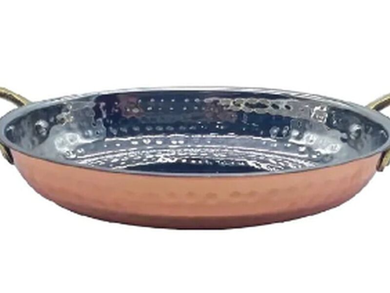 Paila ovalada de cobre Martita Serani, para servir acompañamientos, guisos, aperitivos y otras preparaciones de manera original.