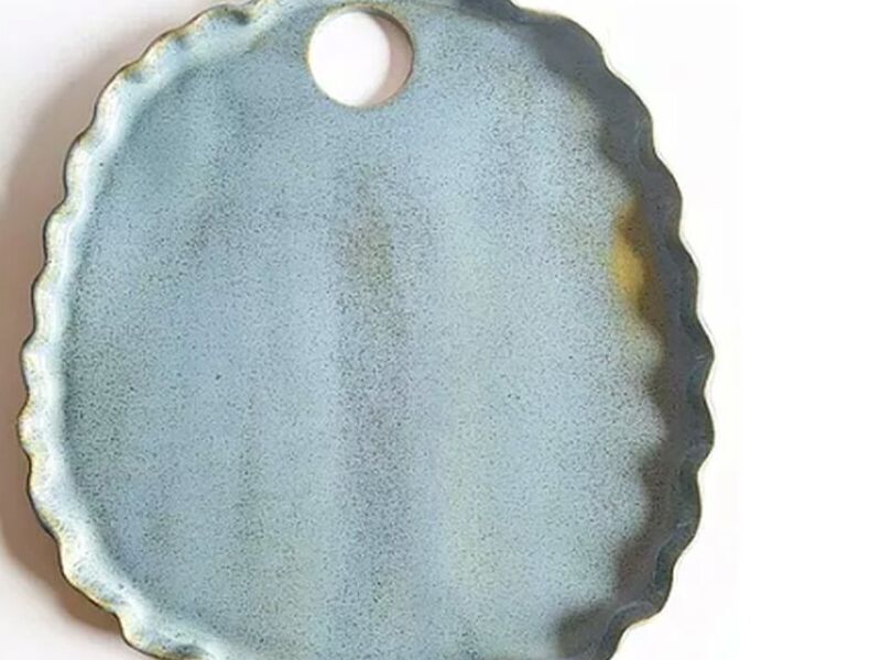 Bandeja de cerámica gres, lisa, bordes ondulados y esmalte color azul piedra.