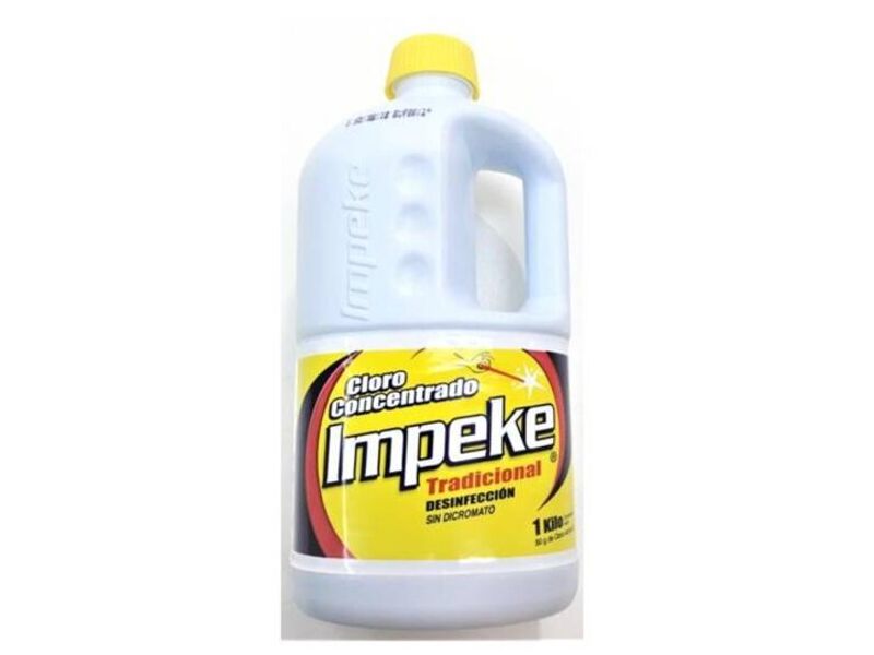 Comprar Cloro concentrado tradicional 1000gr Impeke en Chile, contamos con amplio stock disponible. Productos de aseo, bolsas de basura, WD40, limpia pisos, limpia lozas, barre agua, paños, cotiza gratis en chileinsumos.cl.