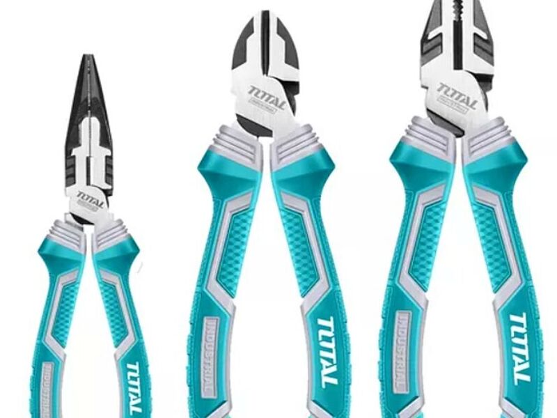 Kit Set Juego 3 Pinzas Industrial Universal Punta Alicate es un conjunto de herramientas de alto rendimiento y calidad industrial. Características: • Cromadas y ultra resistentes. • Fabricadas con tecnología líder y material de acero CR-V. • El conjunto incluye 3 tipos de pinzas: universal, de punta y alicate. • Material: CR-V, bola negra fuerza en comparación con el corte regular. • Alta tensión hasta 500 - 600V • Uso: Profesional Especificaciones: • Pinza de Punta: 160 mm / 6". • Pinza Alicate: 180 mm / 7". • Pinza Universal: 200 mm / 8". TOTAL HERRAMIENTAS es una marca con presencia en más de 160 países.