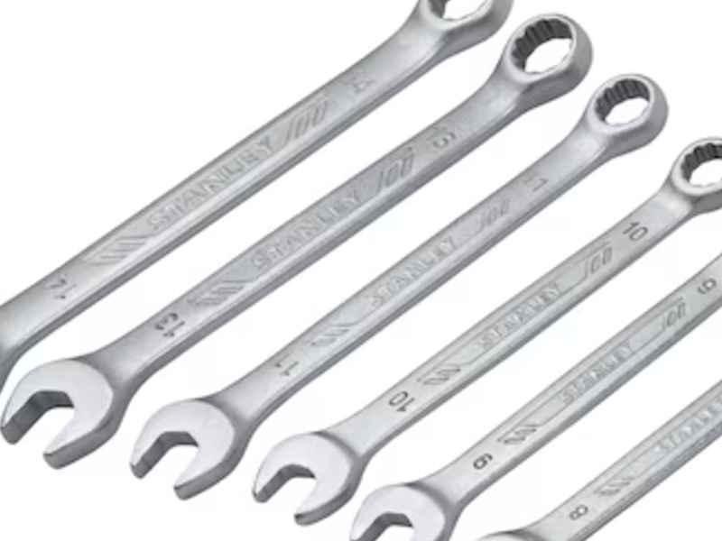 Conjunto de llaves combinadas de la marca STANLEY®, diseñadas con un agarre antideslizante para mayor seguridad y comodidad durante el uso.