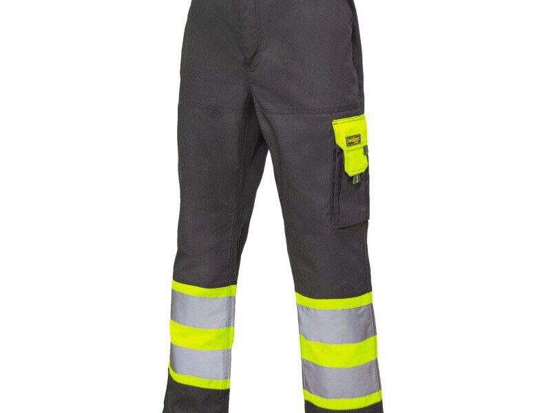 Pantalón de alta visibilidad: Prenda diseñada para mejorar la visibilidad del usuario en entornos laborales. Fabricado con materiales llamativos y reflectantes, este pantalón es ideal para trabajadores en situaciones de baja luz o en áreas de tráfico. Ofrece seguridad adicional al ser fácilmente identificable, cumpliendo normativas de alta visibilidad. Perfecto para actividades al aire libre donde la visibilidad es crucial.