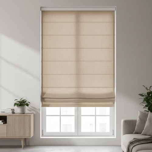 Un panel de tela que se pliega horizontalmente en segmentos apilados (o 'paquetes') a medida que se sube, creando un efecto decorativo.
