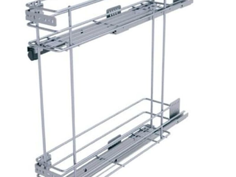 Especiero. Cierre suave. Riel oculto lateral, dos bandejas metálicas para módulo de 150mm de ancho mínimo.