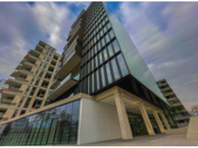 Ubicado en la comuna de Vitacura, cuenta con 6 subterráneos y 14,5 pisos. Terminaciones con fachadas acristaladas tipo muro cortina, pavimentos de hormigón afinados y porcelanatos en áreas comunes