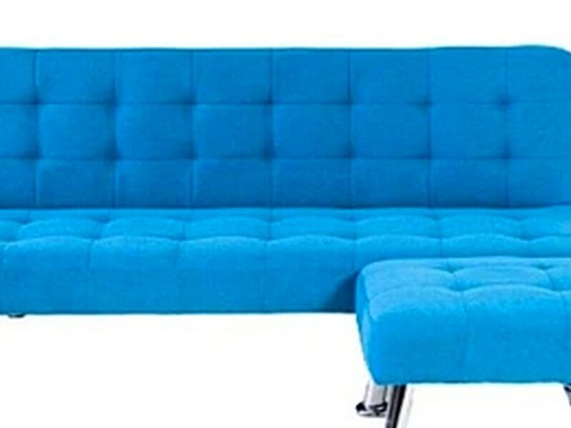 Nuestro sofá cama Madrid, en forma de L. Cuenta con un lindo diseño ideal para ambientar, decorar y aprovechar al máximo los espacios. El puff, se utiliza como asiento adicional o como apoyo para los pies.
