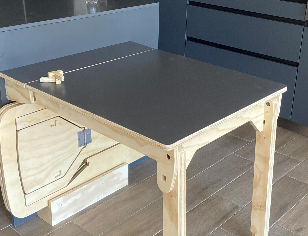 Mesa auxiliar de madera clara, perfecta para sala o dormitorio.
