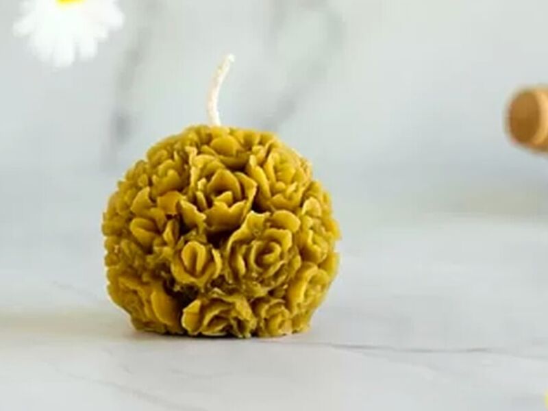 Vela decorativa en forma de racimo de rosas, ideal para dar un toque especial a tu hogar, una vela 100% natural de cera de abeja que purifican el ambiente.