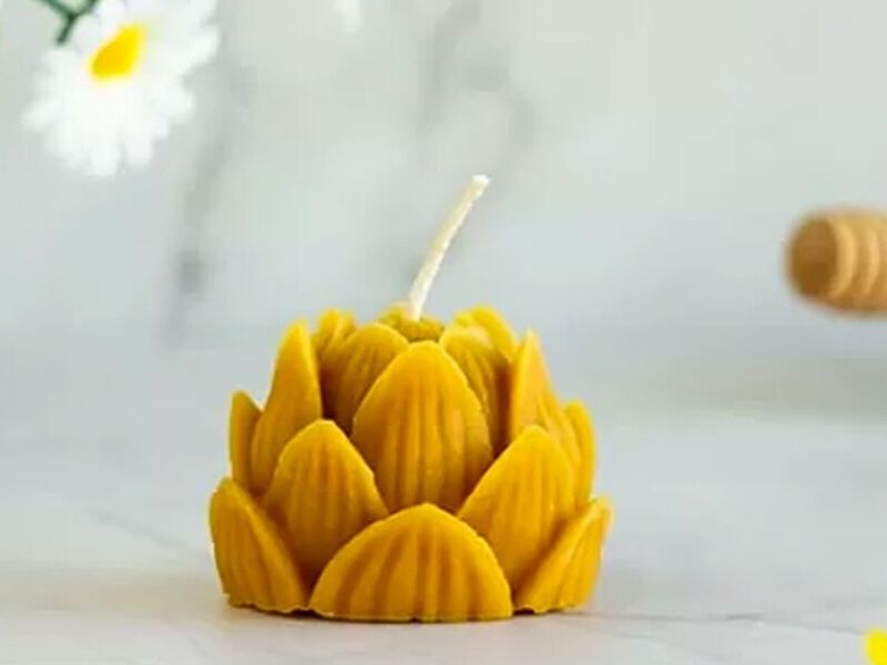 Vela decorativa en forma de flor de loto, una vela 100% natural de cera de abeja que purifican el ambiente.