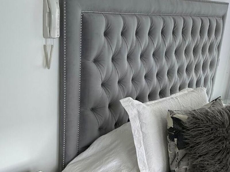 respaldo de cama de madera tapizada