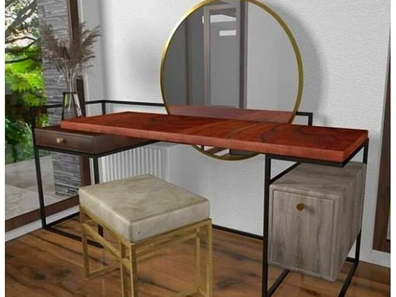 El tocador tiene un diseño clásico, con un espejo grande y trece cajones. Los cajones son espaciosos y tienen tiradores de metal dorado, es de alta calidad que es resistente y duradera.