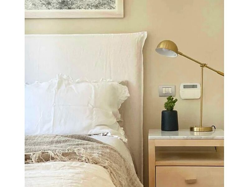 El respaldo de cama es un mueble que se coloca detrás de la cama, generalmente a lo largo de la pared. Puede estar hecho de una variedad de materiales, como madera, metal o tela, y puede tener una variedad de estilos.