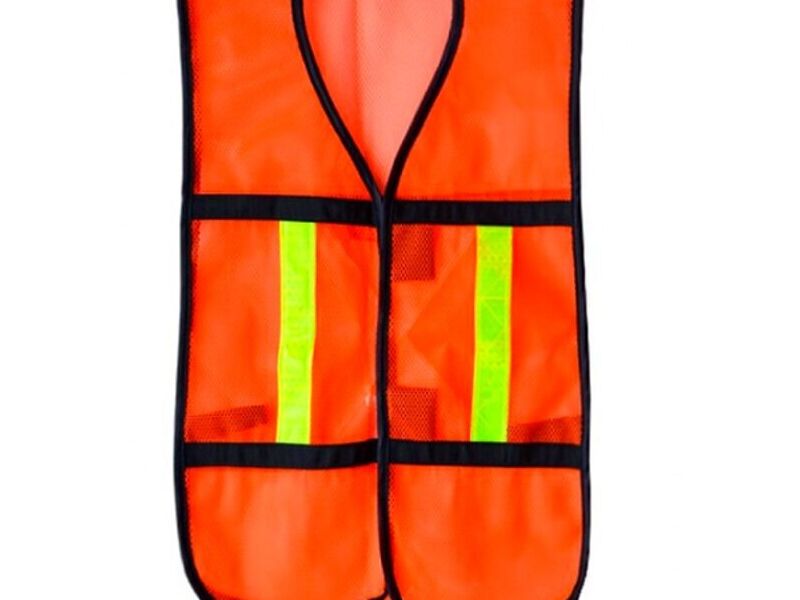 Chaleco naranja de alta visibilidad fabricado en malla, con recubrimiento plástico.