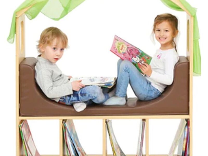Nuestro centro de lectura del bosque es ideal para el uso en la sala de clases, ya que contiene en la parte inferior 4 compartimentos para que los niños o profesores guarden diferentes materiales y libros, y en la parte superior un sofá para que los niños se sienten a leer y así fomentar la lectura entretenida y también una malla de seda. El mueble es de madera, mide 120 x 34 x 130 cms.