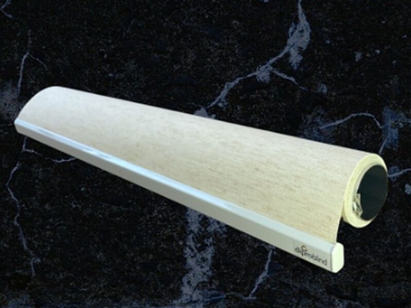 Cortina Roller BlackOut color Lino BO008, con tubo y mecanismos de 28mm, soportes metálicos, peso inferior de aluminio electropintado color blanco de 22mm.