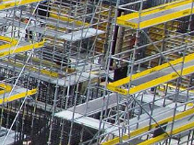 DokaScaff es el complemento ideal para todos los sistemas de encofrado Doka en su obra: con este sistema de andamio de trabajo rentable se pueden realizar trabajos de refuerzo de forma segura y rápida. También es adecuado para su uso como torre de escaleras o andamio móvil.