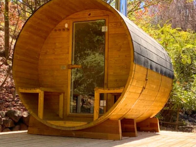 El sauna modelo El Tonel , tipo Finlandés, lo fabricamos a pedido, con capacidad para 4 y 6 personas.