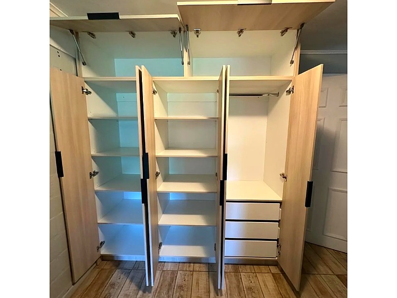 Nuestro clóset en color haya blanco combina un diseño moderno y funcional, perfecto para organizar su ropa y accesorios. Fabricado con materiales de alta calidad, asegura durabilidad y resistencia. Su acabado en haya blanca aporta una sensación de amplitud y frescura al espacio, creando un ambiente luminoso y acogedor en su dormitorio.
