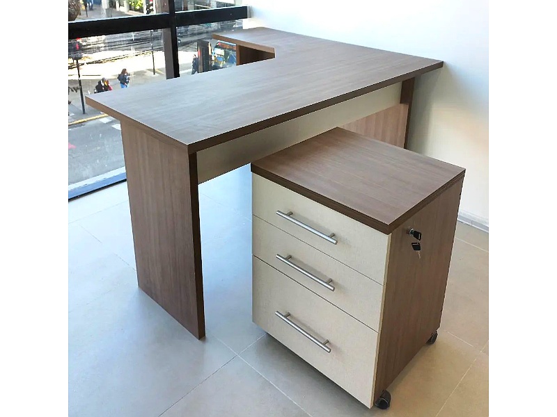 Nuestro escritorio y cajonera en colores teca Italia y lino ofrecen un diseño elegante y funcional, ideal para cualquier espacio de trabajo. Fabricados con materiales de alta calidad, garantizan durabilidad y estilo. La combinación de tonos cálidos y neutros crea un ambiente acogedor y moderno, perfecto para aumentar la productividad y el confort en su oficina o estudio.