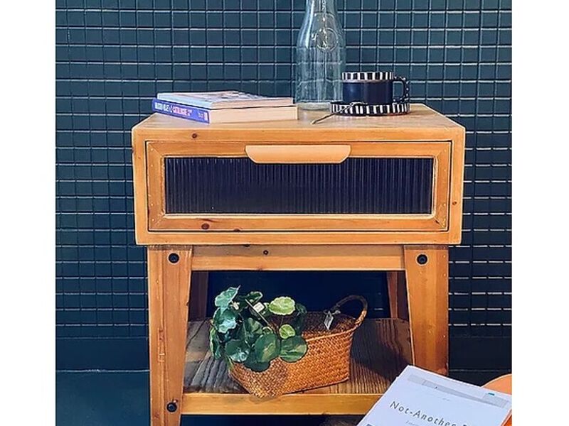 Velador de madera con vidrios acanalados estilo vintage. Mide 56 cm de alto x 50 cm de ancho x 50 cm de fondo.