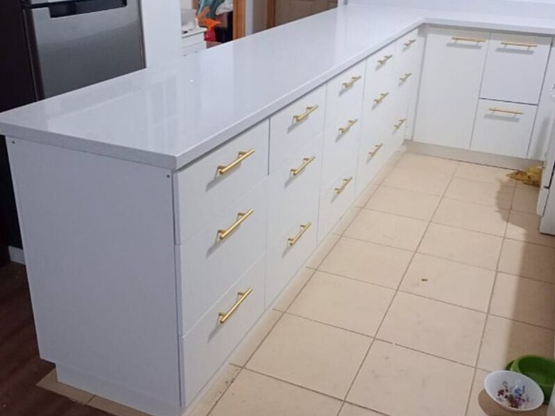Componente de almacenamiento y organización de utensilios y alimentos, con un diseño en color blanco que aporta luminosidad y sensación de amplitud.