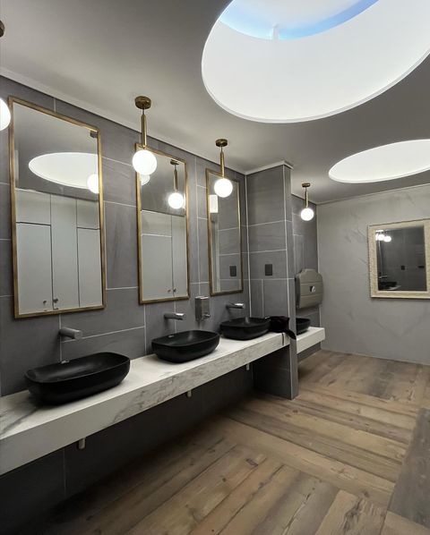 proyecto de reforma total de baños existente, el cual reorganizó la distribución de baños, se realizó redes de Gasfiteria totalmente nuevas, iluminación nueva, revestimientos y artefactos nuevos.