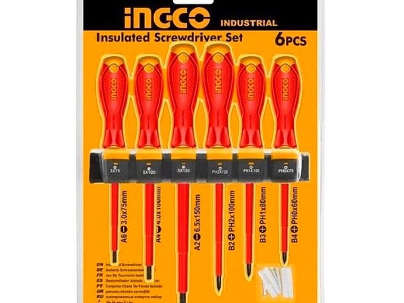 Optimiza tus tareas de bricolaje con el Juego de Destornilladores Aislados de 6 piezas de INGCO. Este completo set incluye destornilladores SL y PH en diferentes tamaños para adaptarse a diversas necesidades. Fabricados con calidad, cuentan con aislamiento para mayor seguridad. Con medidas como SL6.5x150 y PH2x100, este set es esencial para cualquier proyecto.