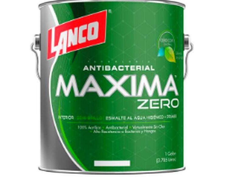 Lanco® Maxima™ Zero es la pintura higiénica de interior más ecológica. Libre de C.O.V., virtualmente inodora y desarrollada con Tecnología Bioguard*, que incluye eficacia antibacterial para mejorar la calidad del aire. Disponible en blanco, en presentación de 1 galón. Ideal para ambientes saludables y sostenibles.