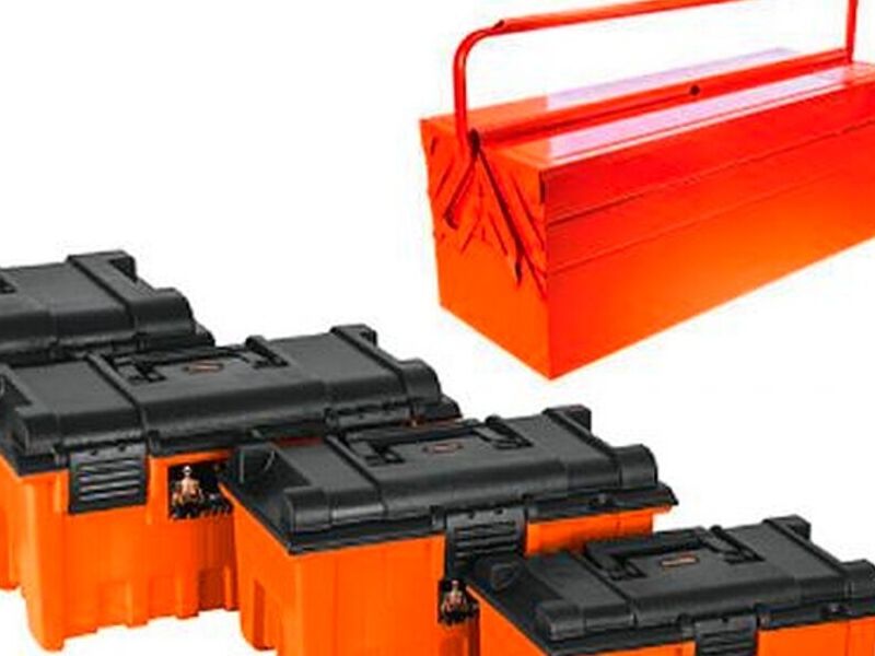 Cajas portaherramientas metálicas y plásticas para guardar y trasladar herramientas y algunos material para su labor.