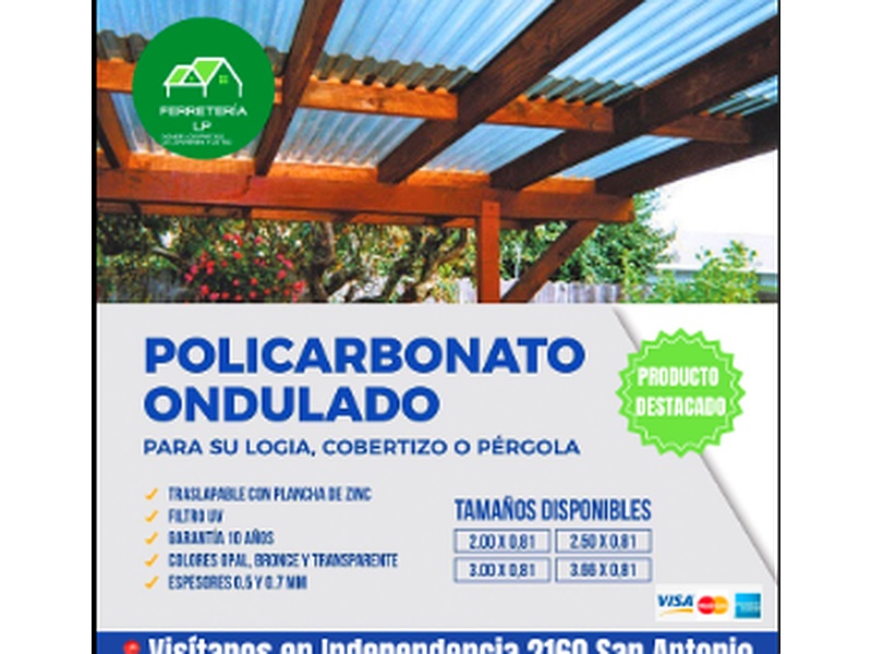 Recordamos que también contamos con Policarbonato acanalado y alveolar en diferentes medidas