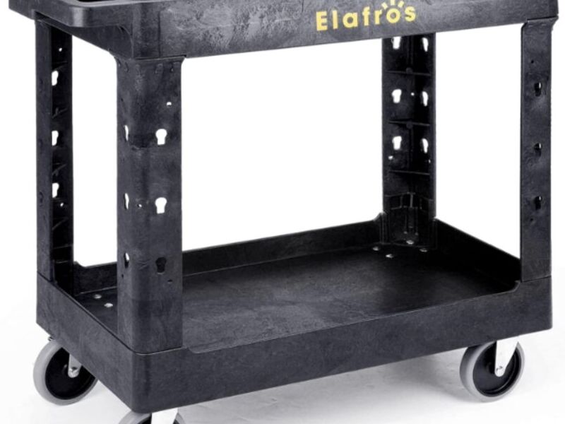 Carro de herramientas con ruedas. Este carro de herramientas resistente y espacioso está diseñado para transportar y almacenar herramientas de manera conveniente y organizada. Equipado con ruedas giratorias y un mango telescópico, es perfecto para profesionales y aficionados por igual.