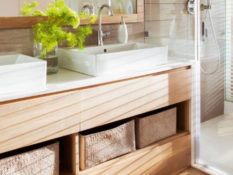 La decoradora Marta Tobella aprovechó el hueco libre entre la ducha y los sanitarios para colocar este mueble hecho a medida doble. Tiene mucha capacidad y visualmente es ligero. Se han combinado dos hileras de cajones en cada módulo porque aprovechan mejor el espacio que los armarios y, abiertos, dejan todo el contenido a la vista gracias a su extracción total.